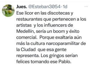 Según internautas, el licor ya se empieza a ver en Medellín, cuna del capo de capos. No faltaron los que, desde ya, proponen que en las discotecas de la capital antioqueña, aquellas inauguradas por famosos cantantes y artistas paisas, este nuevo licor sea expendido.