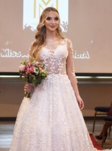 Las candidatas modelaron atuendos de reconocidas marcas de diseñador como @Mayemaldonadodesigner y @Bordadosjariaschia, resaltando el talento nacional en moda y diseño.